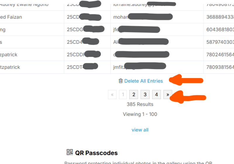 On the page that lists QR passcodes, the link to "Delete All Entries" is right on top of the 'go to next page' buttons.