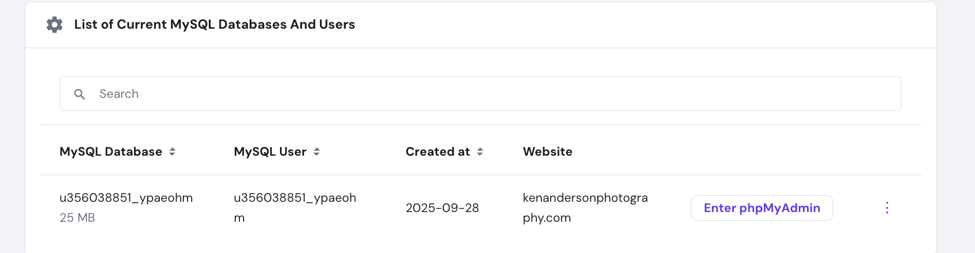 Fatal error: Uncaught mysqli_sql_exception: Access denied for user 'u356038851_db'@'localhost' (using password: YES) in /home/u356038851/domains/kenandersonphotography.com/public_html/gallery/sy-inc/functions.core.php:15 Stack trace: #0 /home/u356038851/domains/kenandersonphotography.com/public_html/gallery/sy-inc/functions.core.php(15): mysqli_connect() #1 /home/u356038851/domains/kenandersonphotography.com/public_html/gallery/sy-admin/index.php(30): dbConnect() #2 {main} thrown in /home/u356038851/domains/kenandersonphotography.com/public_html/gallery/sy-inc/functions.core.php on line 15