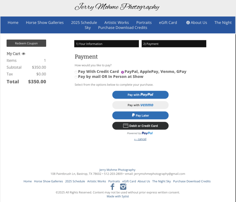Other Payment options such as Apple Pay , G Pay and PayPal work.